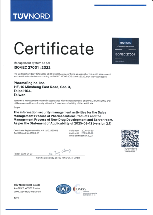 智擎於2022年開始導入ISO27001資訊安全管理系統並於2023年1月取得該證書,並於2026年1月取得重新驗證審查證書。